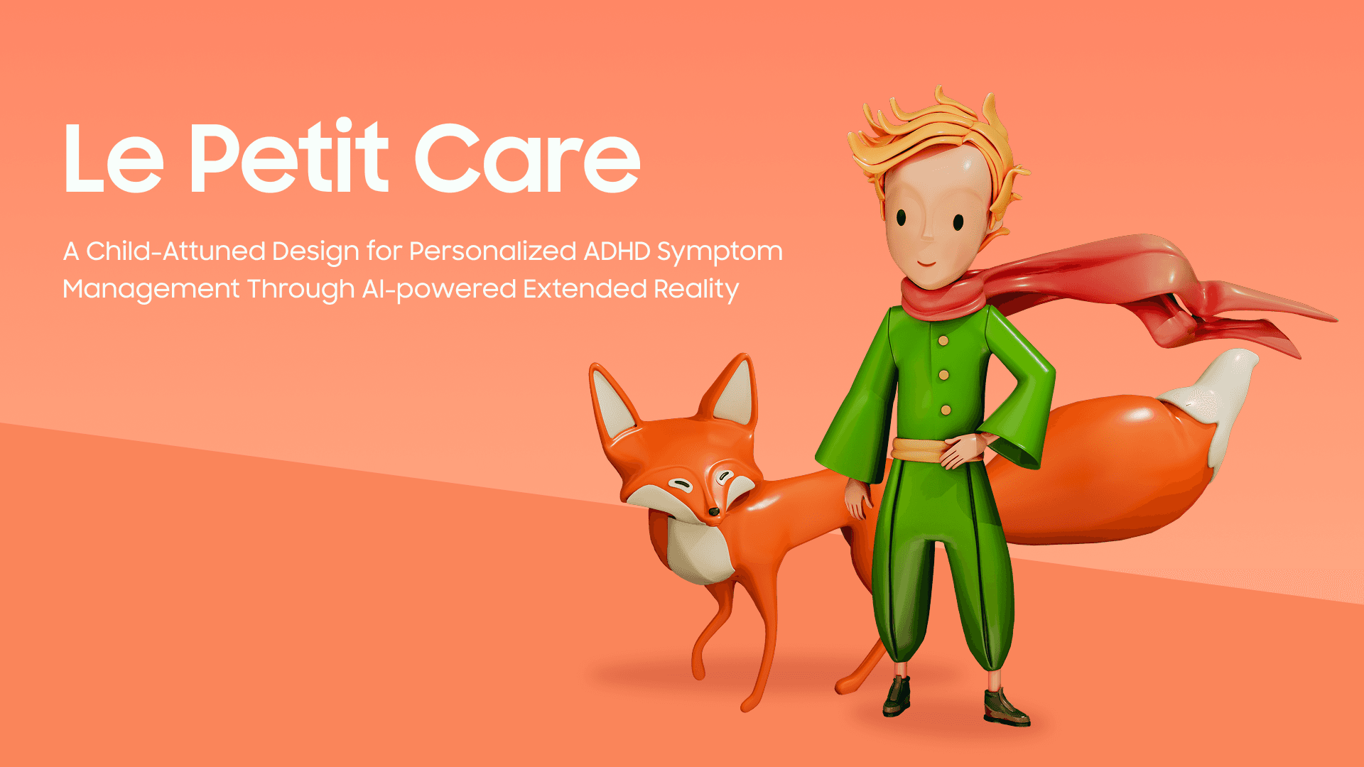 Le Petit Care는 ADHD의 약물 치료를 보완하고 기존 디지털 치료제의 한계를 극복하기 위해 설계된, AI 모델에 확장 현실(Extended Reality) 기술을 결합한 게임 솔루션입니다. 이 프로젝트의 목표는 아동이 진단과 치료 과정 전반에서 겪는 부정적 자아 인식과 죄책감을 완화하고 ADHD 증상을 효율적이며 개인화된 방식으로 관리할 수 있도록 돕는 것입니다. 스타트업 투자사 대표, 아동학 교수, 정신의학 전문의 등 여러 분야의 이해관계자 및 전문가 인터뷰와 폭넓은 자료 조사를 진행하였으며, 이를 토대로 ADHD 아동의 고유한 생리적·행동적 특징을 사용자 중심 원칙과 스토리텔링 프레임워크에 통합하여 맞춤형 게임 디자인을 설계했습니다. Le Petit Care는 국제적으로 공인된 진단 기준인 DSM-5를 기반으로 아동에게 특화된 가상 콘텐츠 환경에서 머리 움직임·시선 추적·행동·음성 등 다차원 데이터를 수집하고, 딥러닝 모델이 이를 실시간 분석하여 ADHD를 정량적으로 스크리닝합니다. 그리고 이러한 결과를 통해 각 아동에게 최적화된 행동 발달 훈련 시스템을 유기적으로 제공합니다.